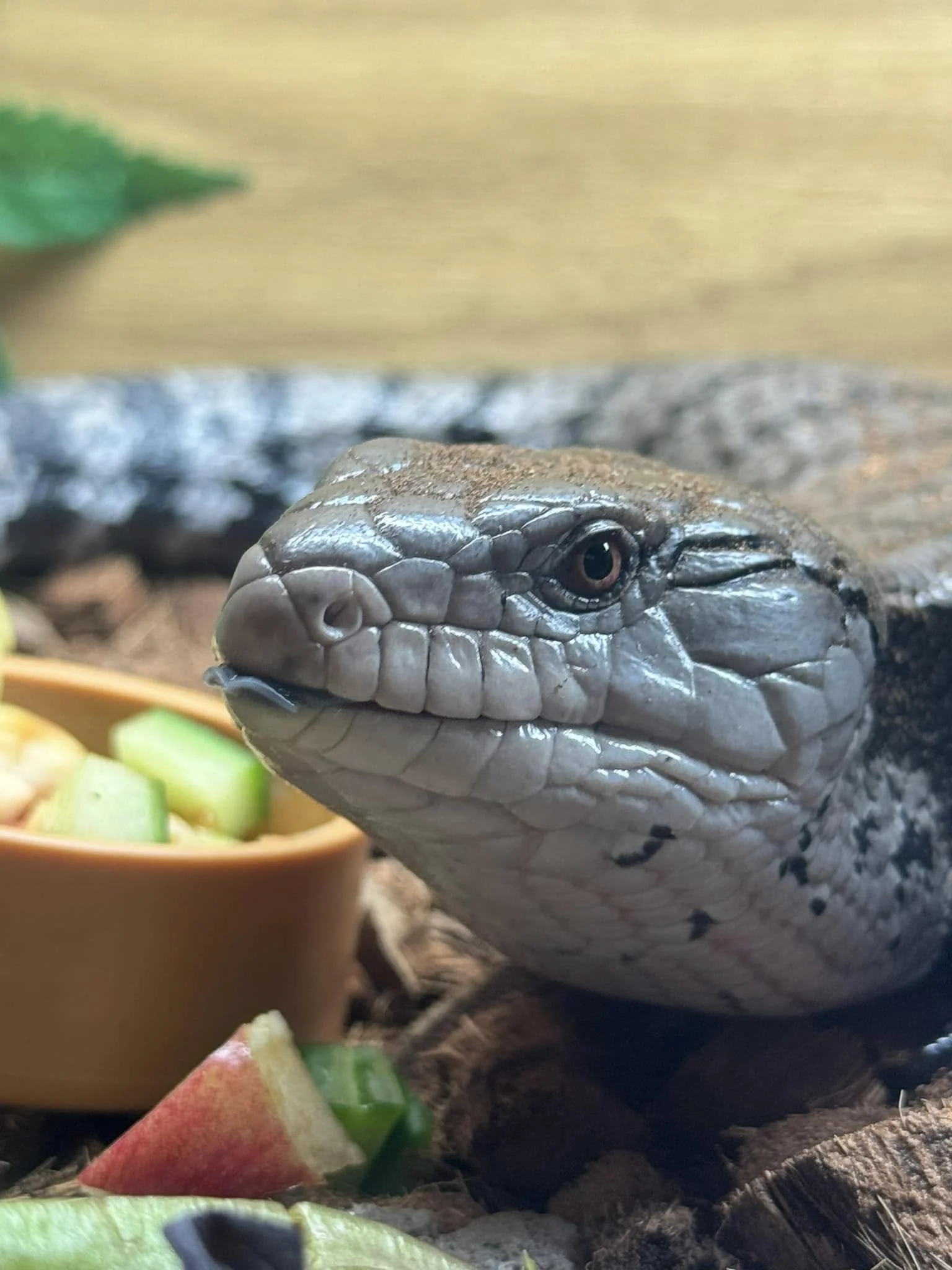 Obviously, he’s stunning. His incredible patterns are mesmerising - and if you’re lucky and catch him in just the right light, you’ll see the iridescence in his skin glimmering. But he’s also an absolute softie - he loves attention, and will literally ask you for chin tickles.