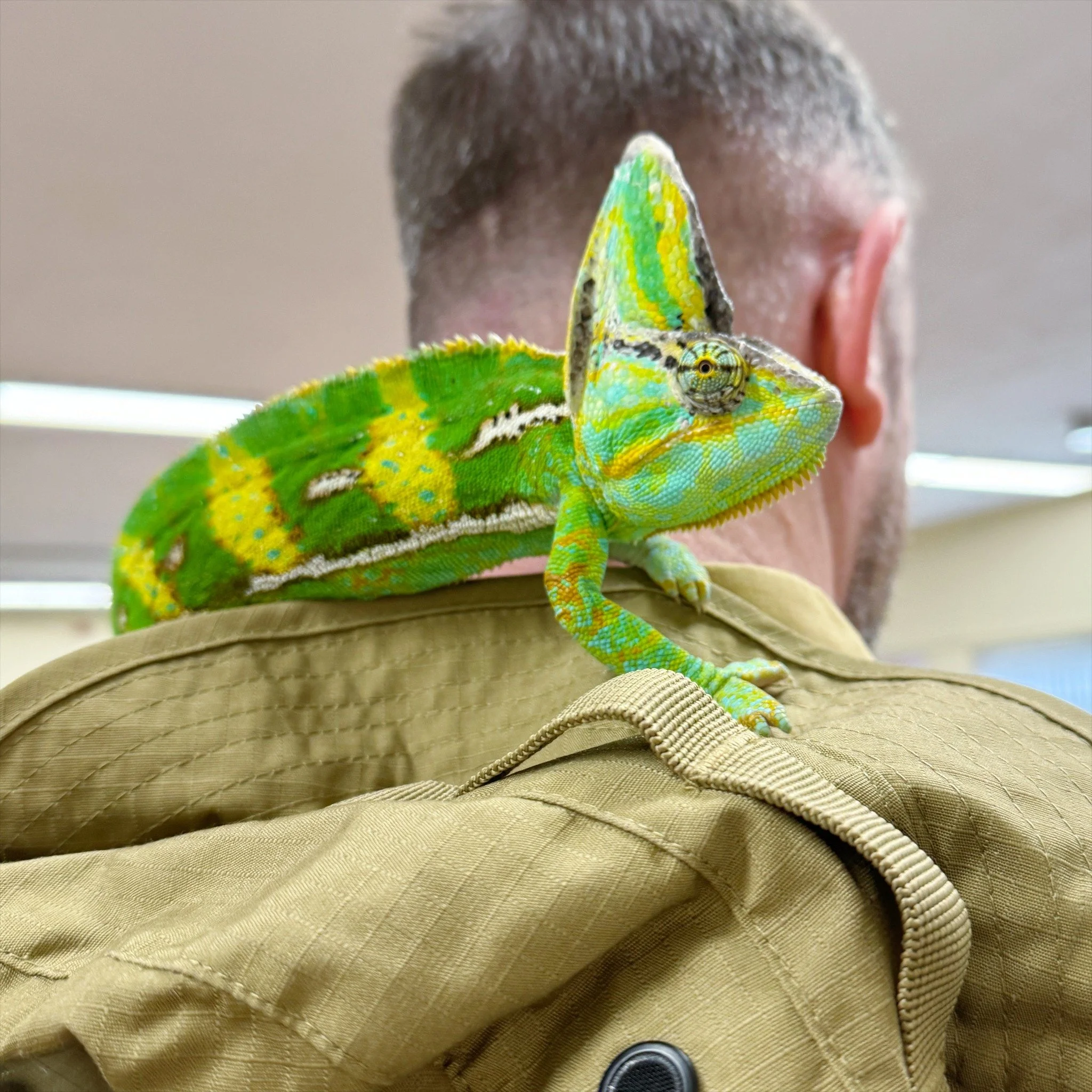 Axl was our first chameleon (and he was a tiny baby when we got him), and a much loved part of the Scaly Safari Crew. With his funny expressions and mannerisms, he was a character that brought smiles to so many faces. We were absolutely devastated when he passed away in March 2026, and we were so glad we were with him in his final moments.